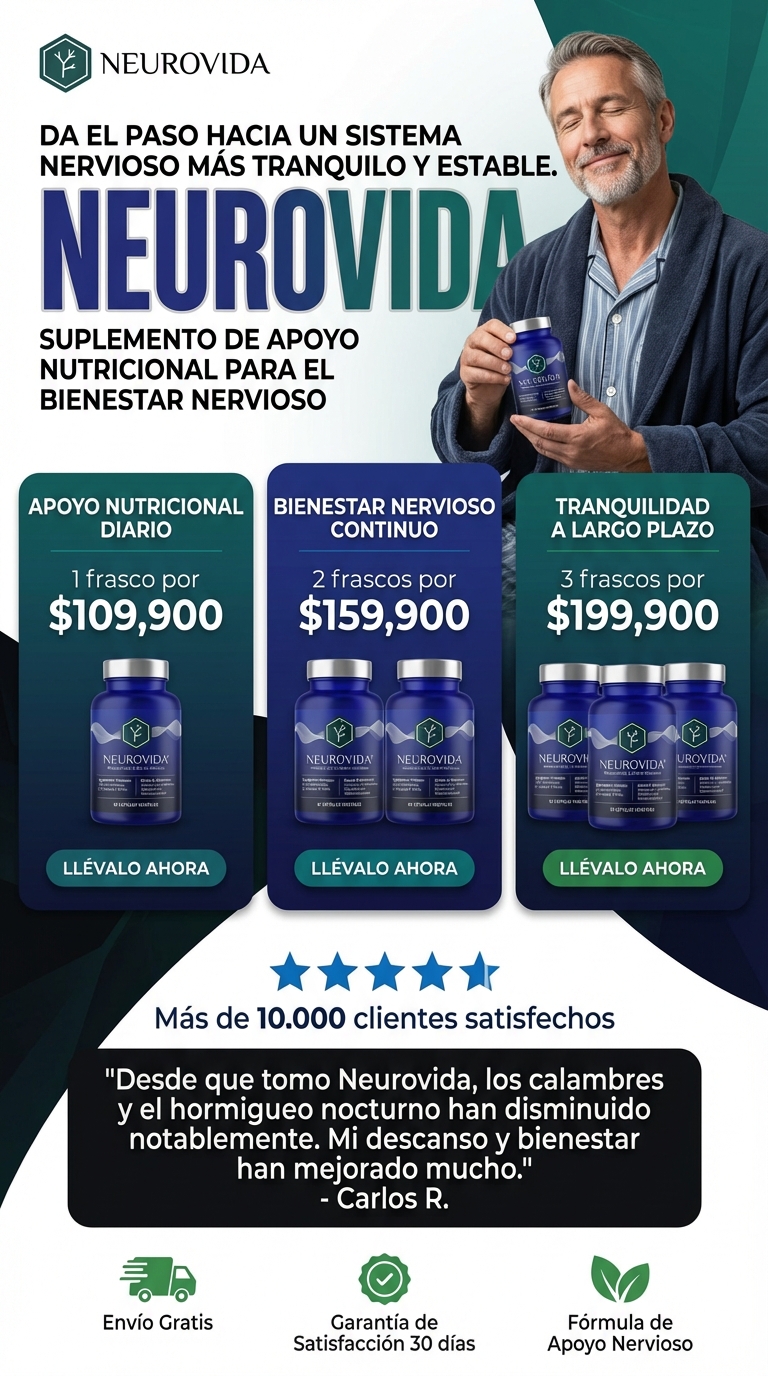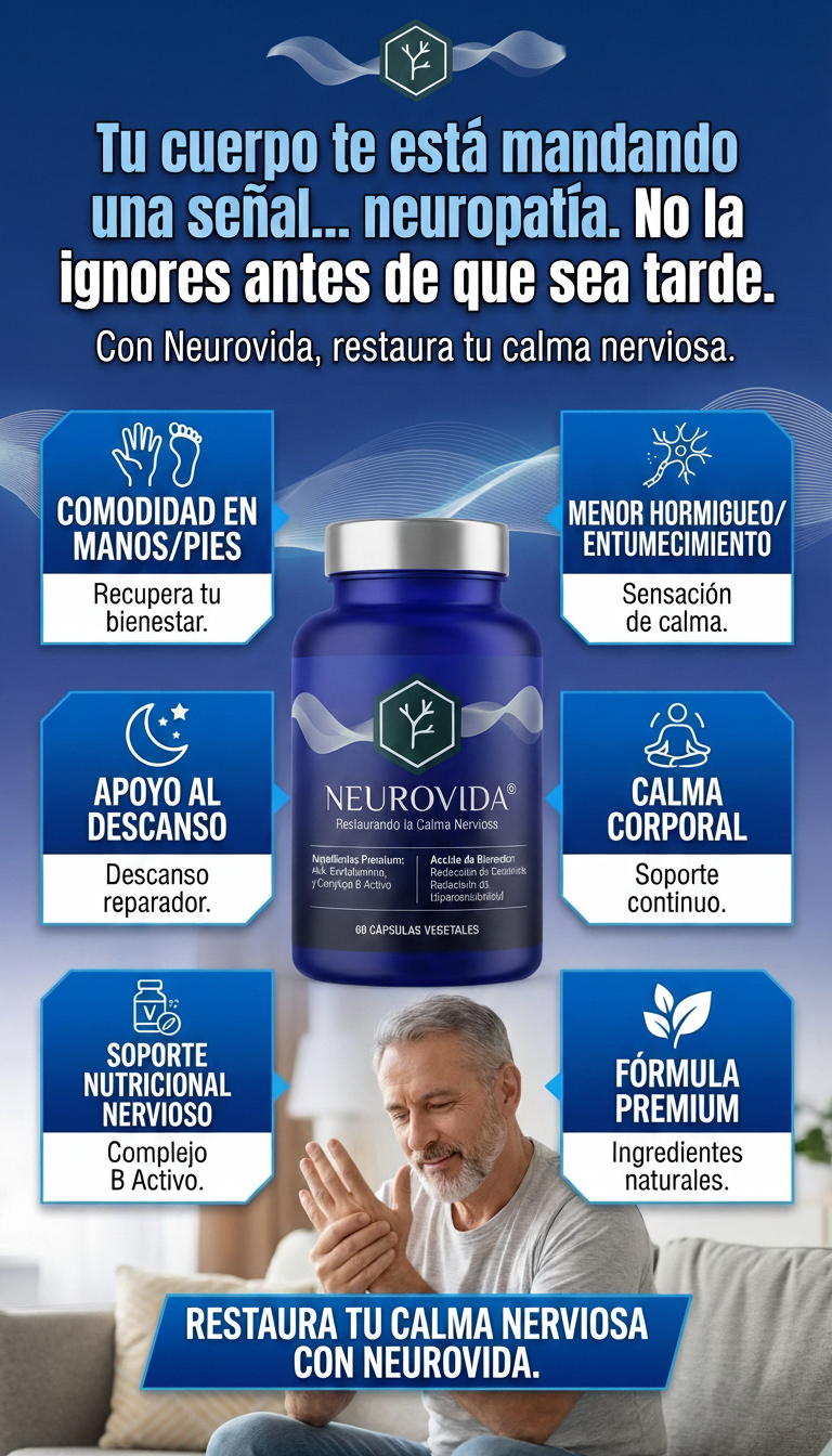 Neurovida® contiene una fórmula con ingredientes seleccionados para el bienestar nervioso, como ALA, benfotiamina y complejo B activo. Si quieres conocer la composición completa, puedes revisar la etiqueta del producto.