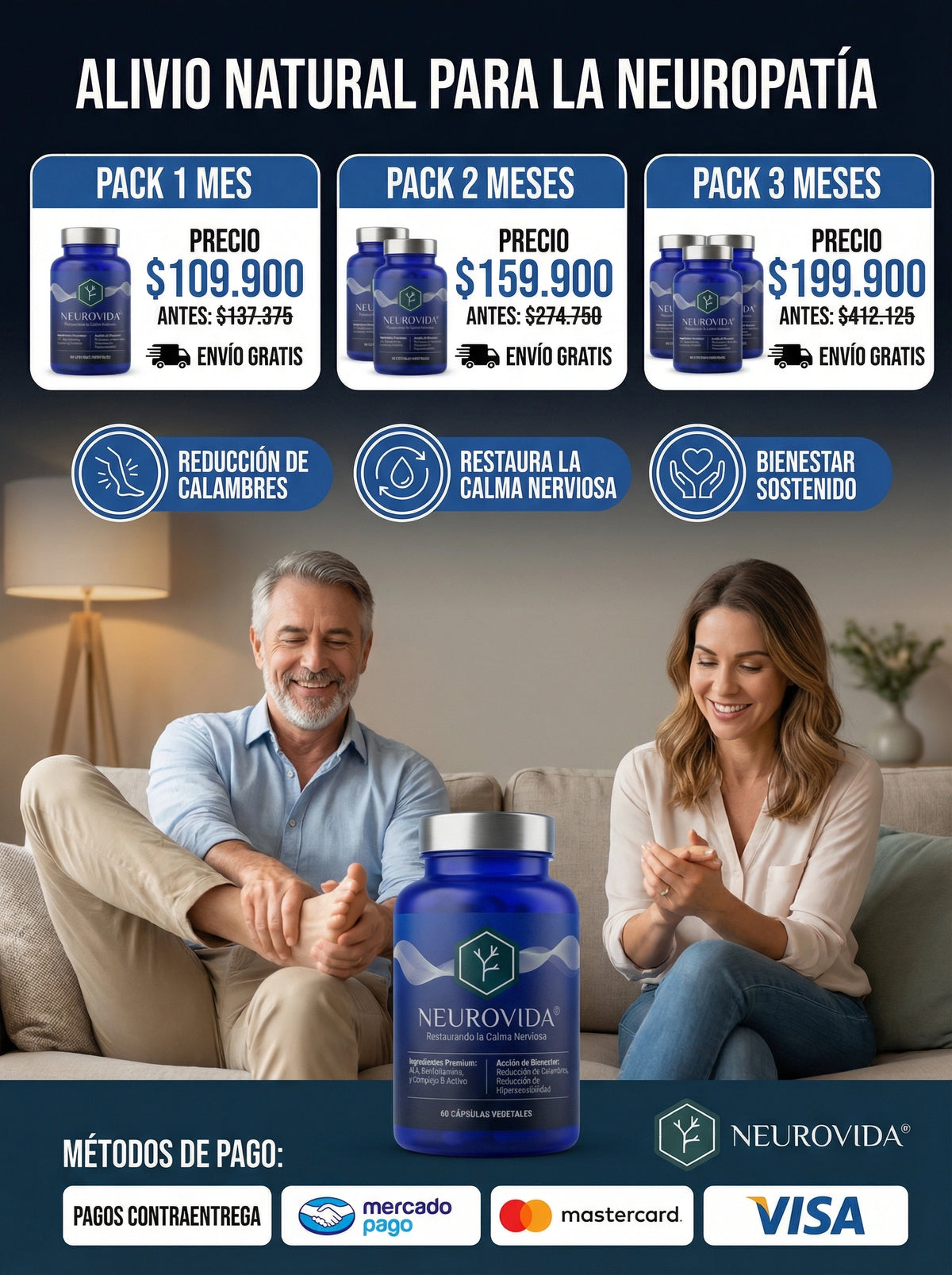 Neurovida® es un suplemento dietario formulado para apoyar la función del sistema nervioso y contribuir al confort diario, especialmente en personas que sienten hormigueo, ardor o adormecimiento en manos y pies.